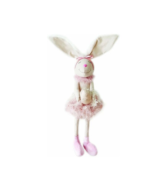 Πανέμορφο διακοσμητικό υφασμάτινο κουνελάκι σε μεγάλη διάσταση,με υπέροχο φόρεμα που στα χέρια του κρατάει αυγό.