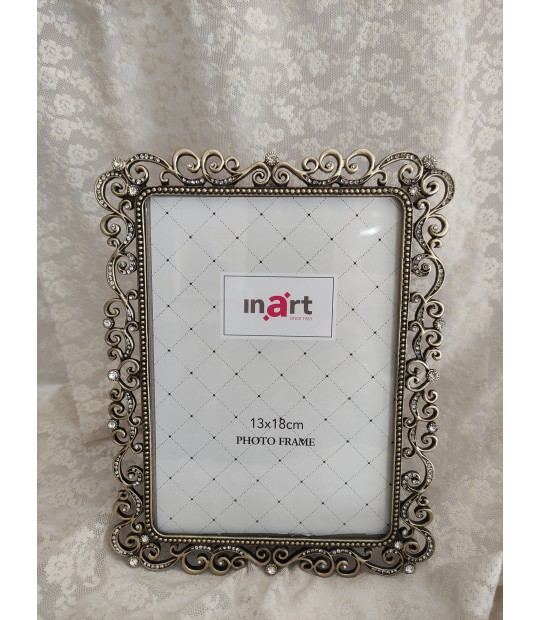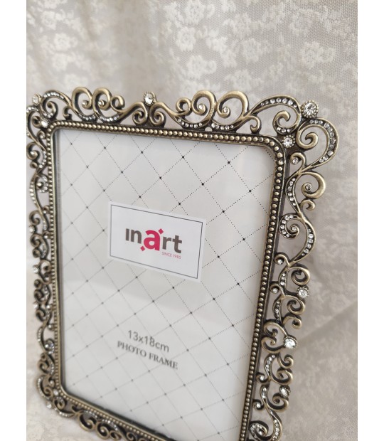 Κορνίζα επιτραπέζια μεταλλική με χρυσές πέτρες σε διάσταση 13Χ18
