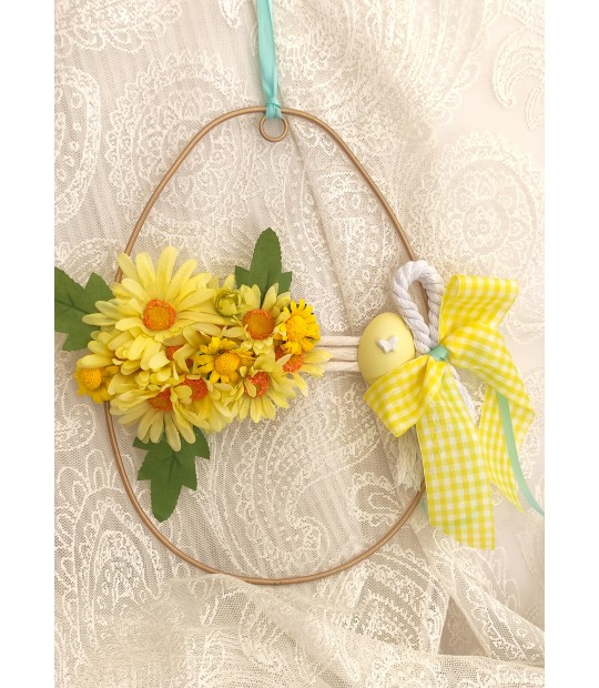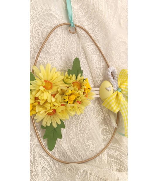 Πασχαλινό στεφάνι σε σχήμα αυγού με όμορφα κίτρινα λουλούδια και σε διάσταση 28Χ18Χ1,5εκ