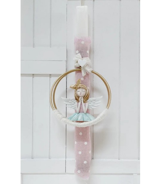 Χειροποίητη λαμπάδα αρωματική σε λευκό κερί διακοσμημένη με νεράιδα με φιόγκο σε υπέροχα παστέλ αποχρώσεις 30εκ.
