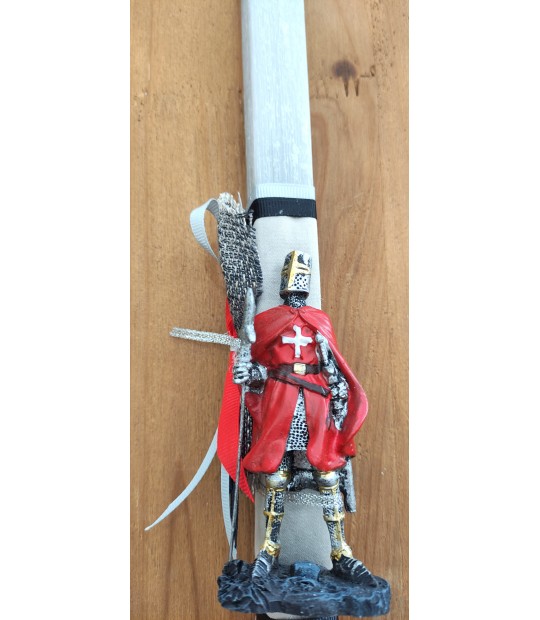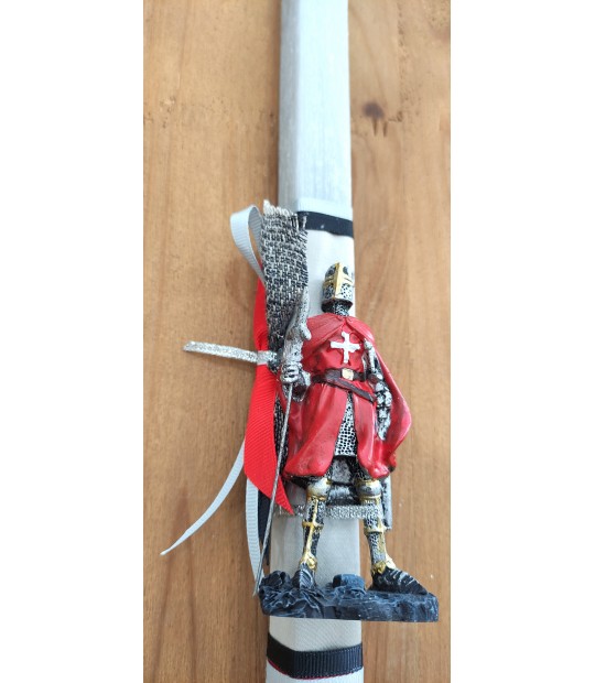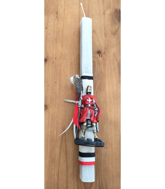 Χειροποίητη λαμπάδα με διακοσμητικό σταυροφόρο σε λευκό πλακέ κερί αρωματικό σε διαστάσεις 30εκ.