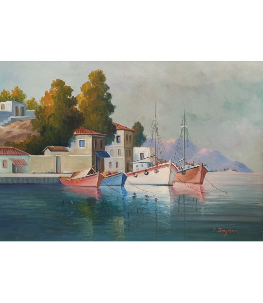 Πίνακας ζωγραφικής του ζωγράφου Τσελίρη λιμάνι σε διαστάσεις 70Χ100
