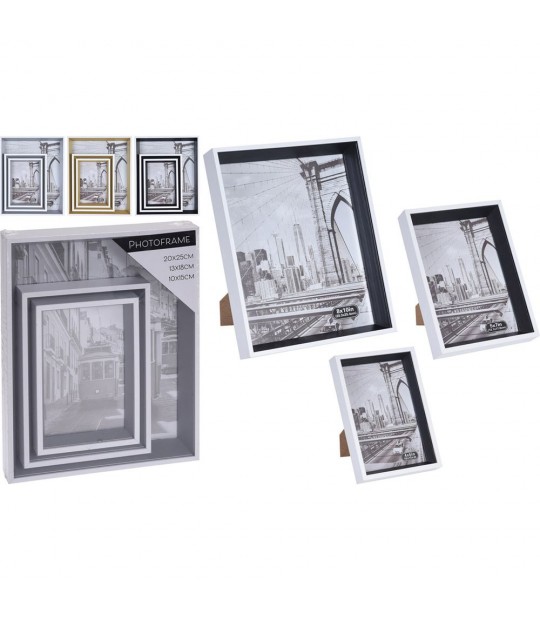Κορνίζες επιτραπέζιες σε διάφορους συνδιασμούς χρωμάτων σετ των τριών σε διαστάσεις 20χ25 13χ18 10χ15